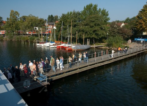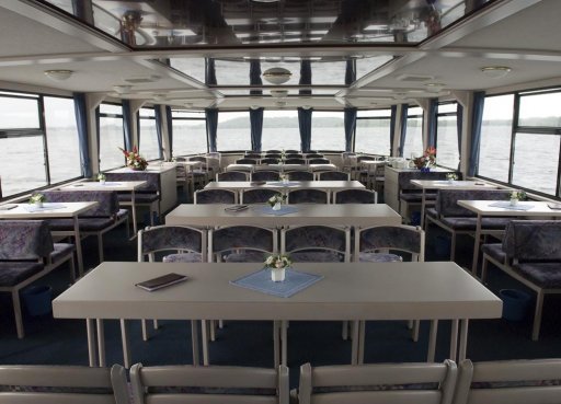 Unser modernes Dreideckschiff "Holsteinische Schweiz" bietet seinen Gästen 230 Salonplätze und 200 Außendeckplätze Es ist behindertenfreundlich, denn für Rollstuhlfahrer haben wir Einstiegsrampen und ein WC an Bord.